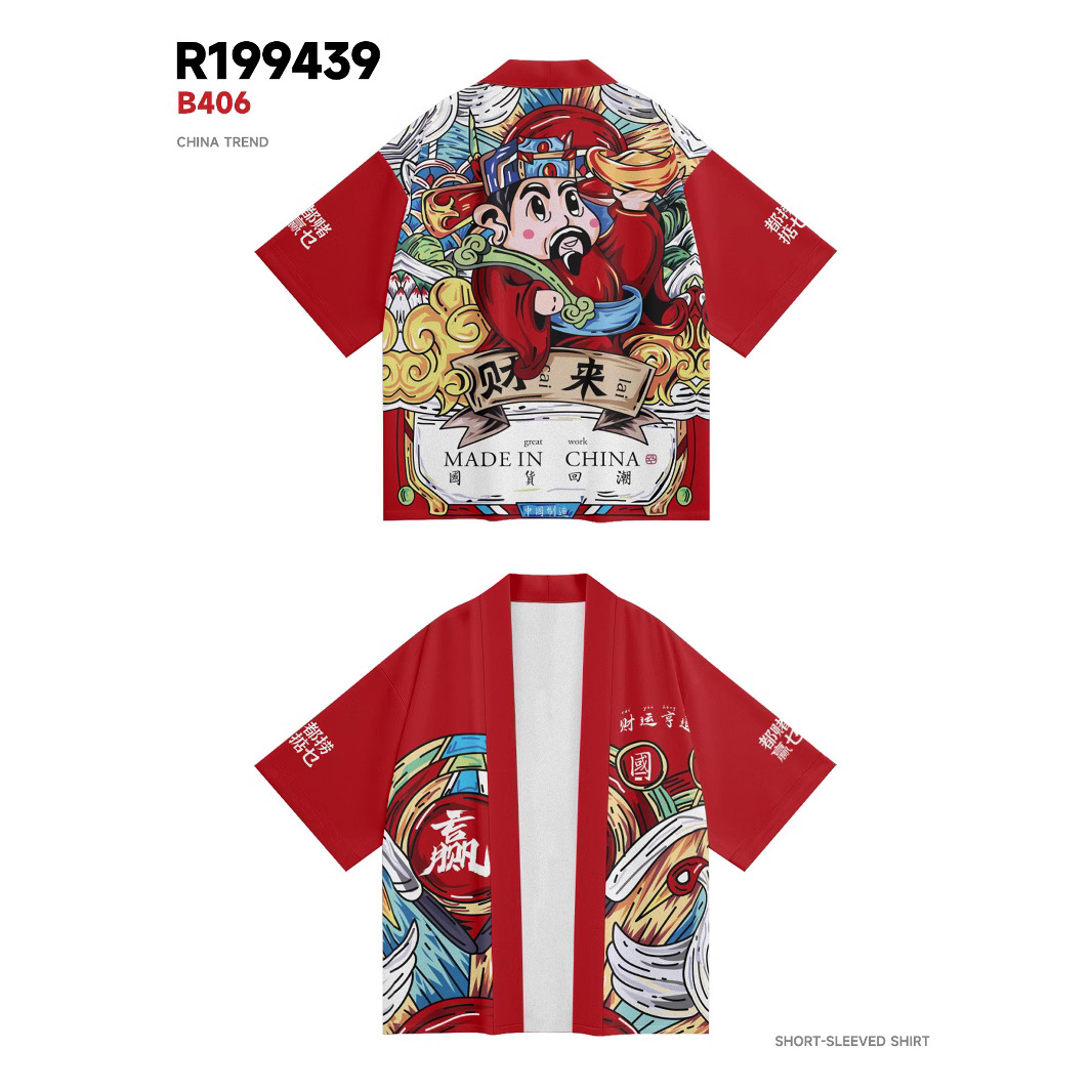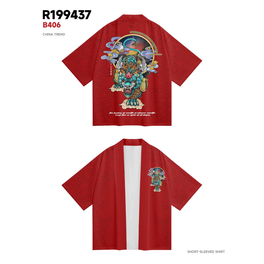 氷鉄サメ夏着物クロスボーダー中国風国潮覚醒ライオン新年あけましておめでとうございますプリント赤ゆるい男羽织