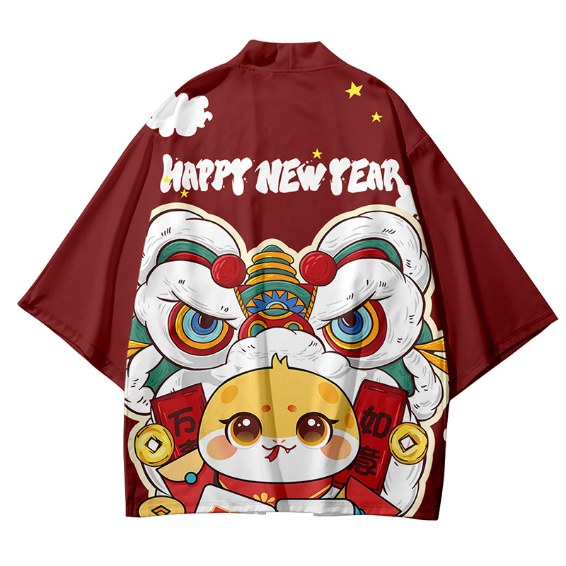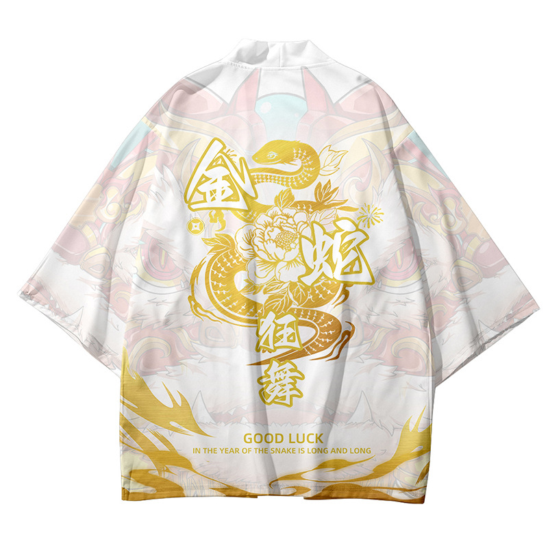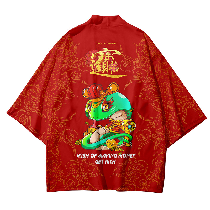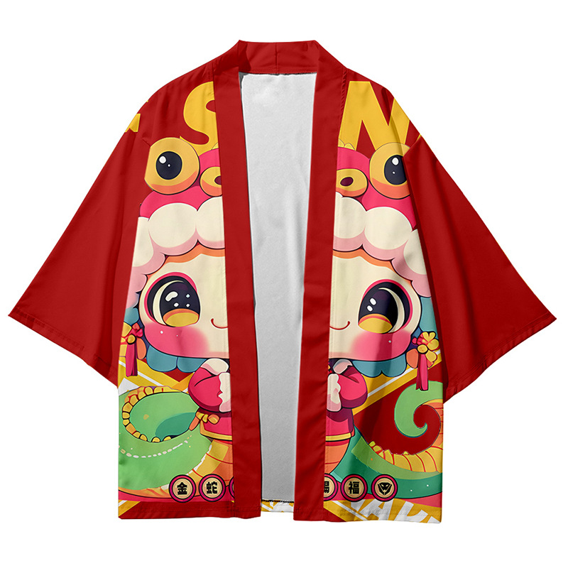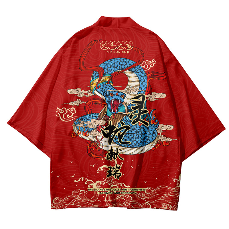 氷鉄サメ夏着物クロスボーダー中国風国潮蛇霊献瑞新年プリント赤ゆるい男羽織
