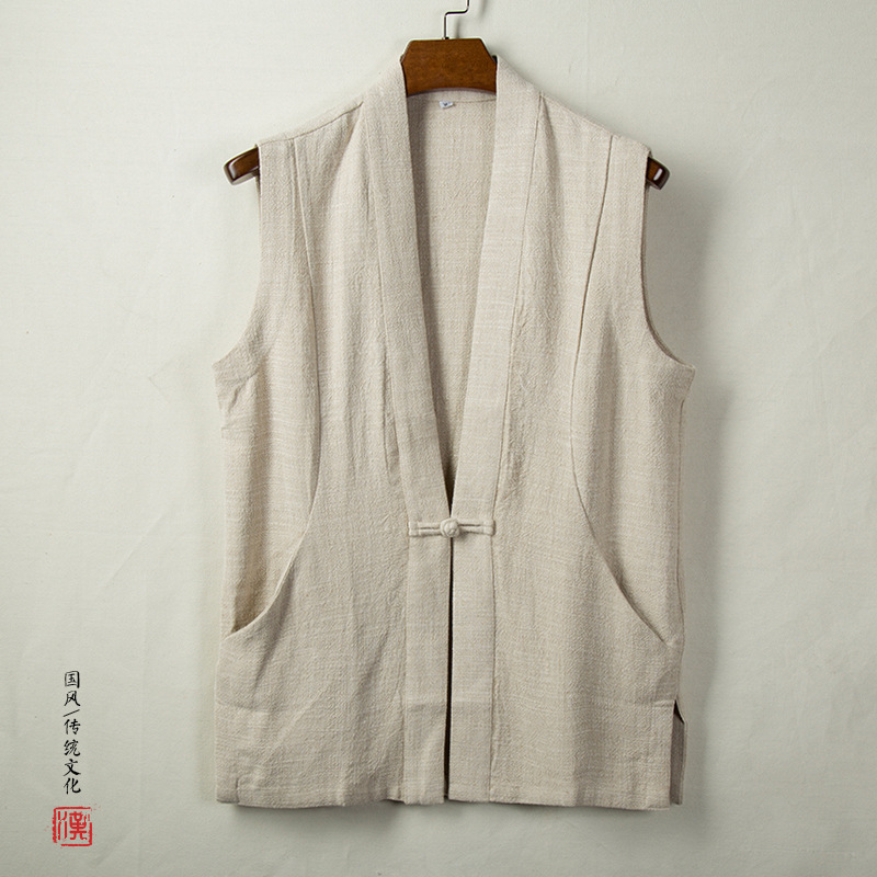 秋冬の新型中国風メンズファッション亜麻ベスト男性禅意レトロ盤バックルカジュアルベスト卸売り