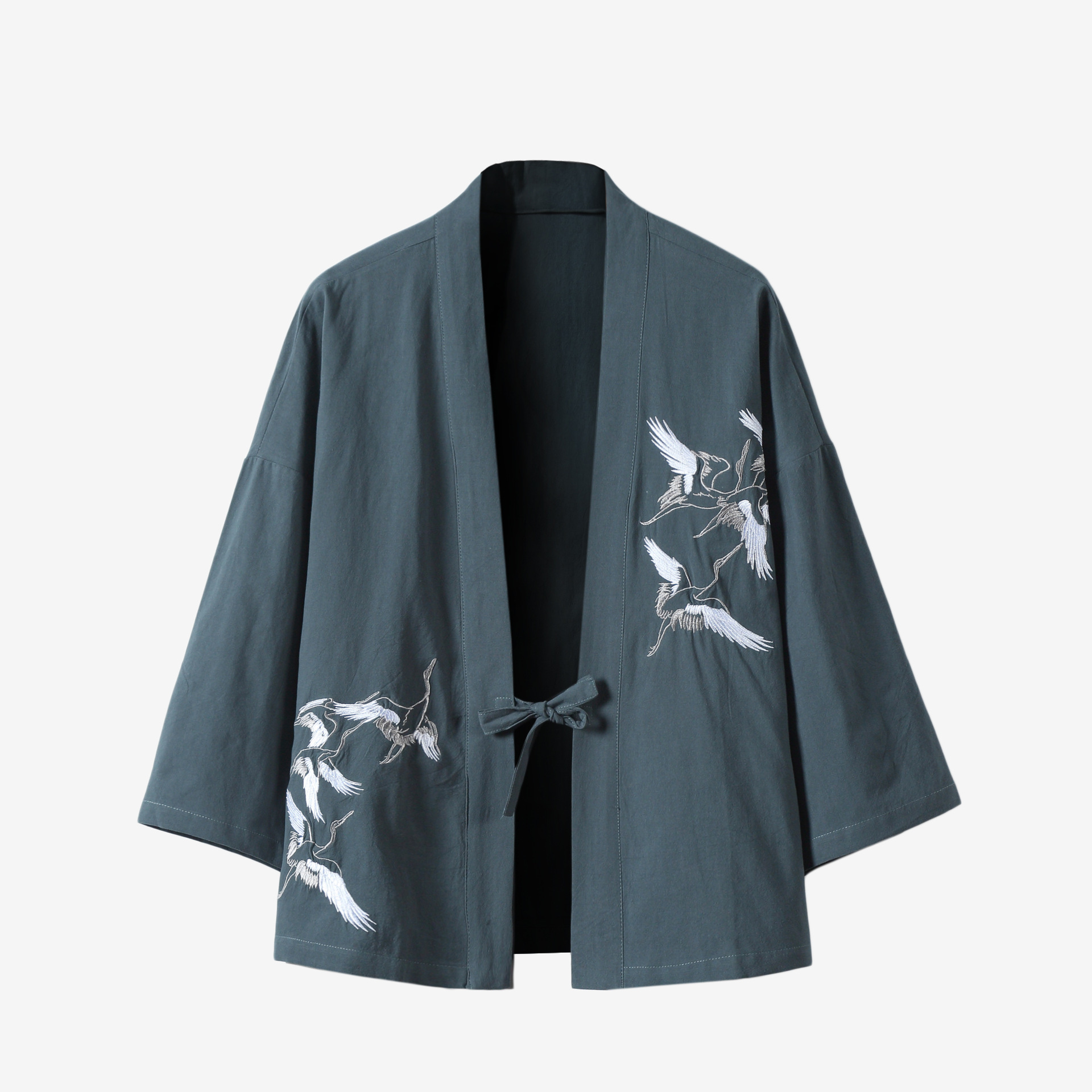 ファッション夏着物クロスボーダー神獣プリント七分シャツ道着カーディガンゆるい男羽织着物