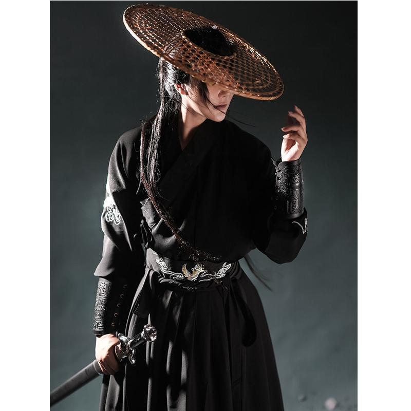 漢服男古風侠客かっこいい刺繍交襟セット男女非古着中国風日常ロングスカート刺繍