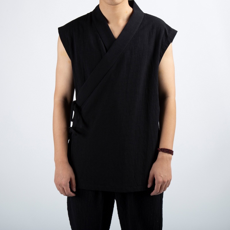 夏の新型中国風紳士服レトロ純色綿麻袖なし漢服男性ファッションカジュアル半袖コート男性