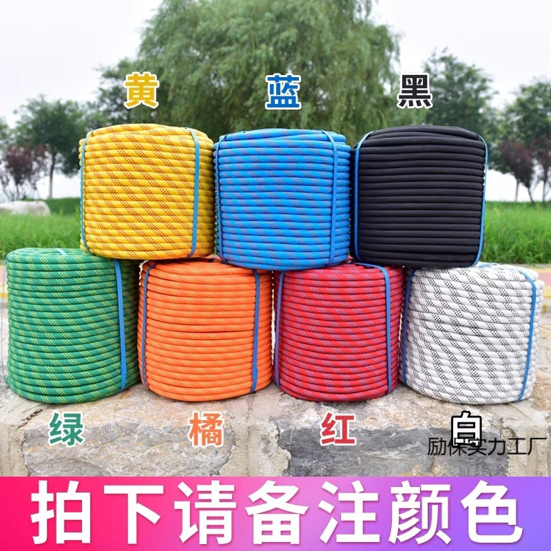 屋外登山ロープ、高所作業、ロッククライミング、厚手のナイロンロープ、静的、安全、耐摩耗性、登山、家庭用カラー