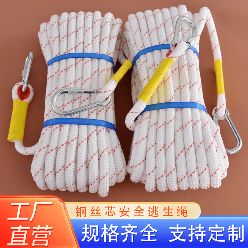 消防ロープ10メートル安全ロープ難燃ワイヤーコア火災脱出救命ロープテント物干しロープ高空ロープ