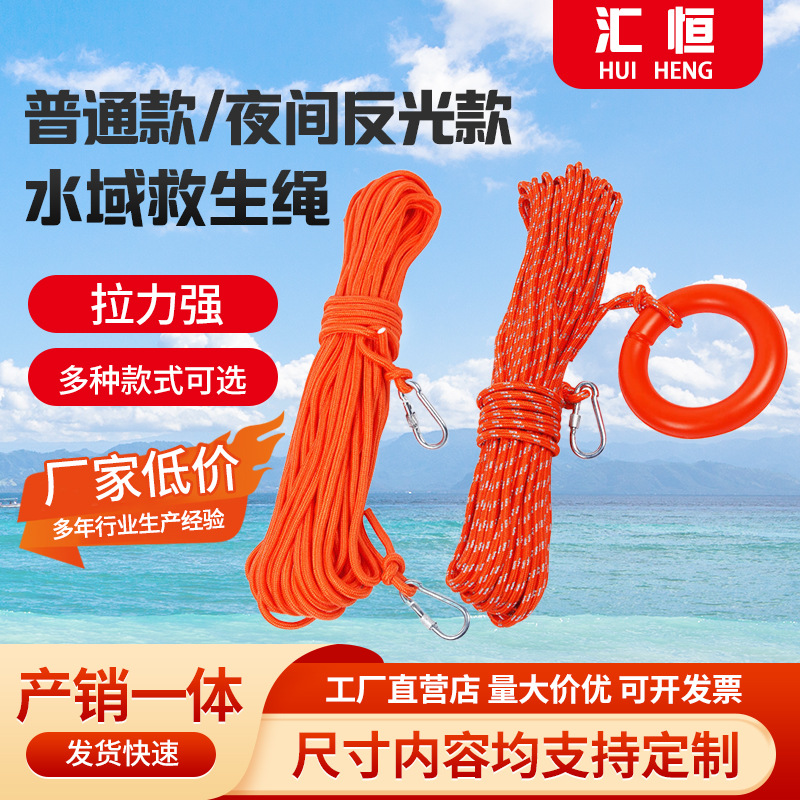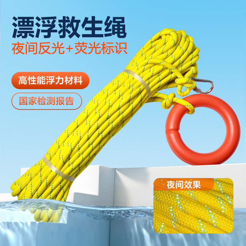 アスアン水上救命ロープ高分子水面浮遊反射救助ロープ蛍光救命輪安全ロープ