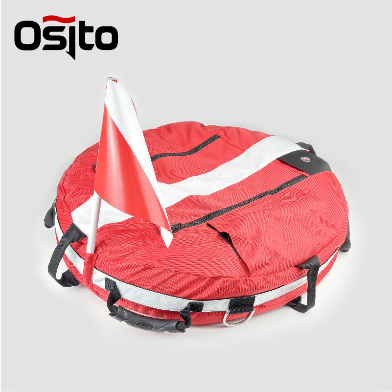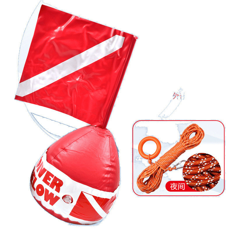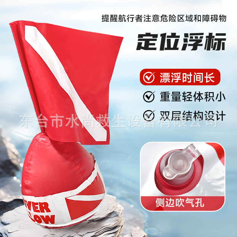 新型自由潜浮球水域レスキュー浮球潜水空気入りブイ信号位置決め警告旗付き