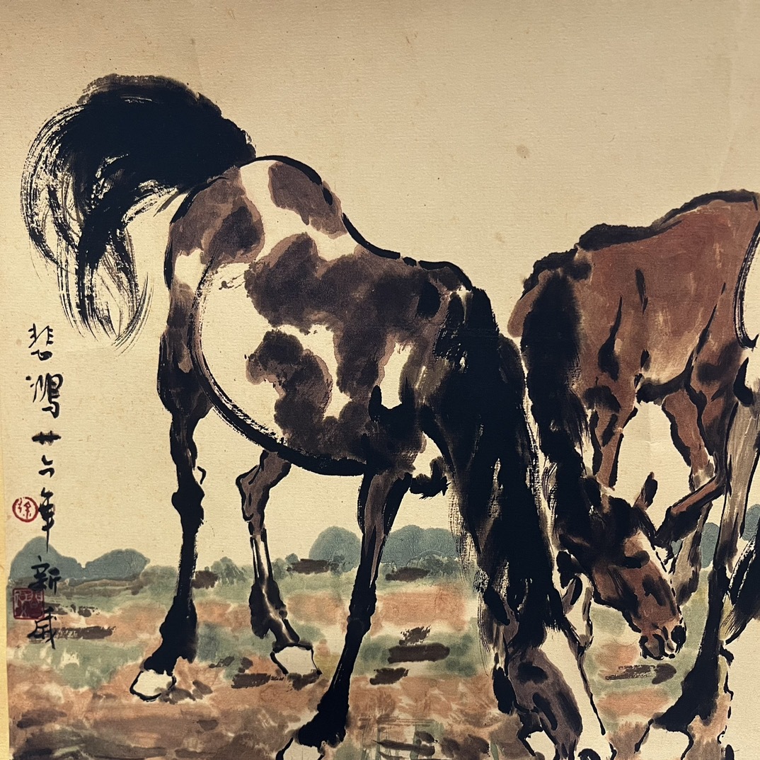 古人の書画をまねる徐悲鴻十駿図巻き画の巻物の客間の装飾画の国画のコレクションは絵の宣伝紙を掛けます。