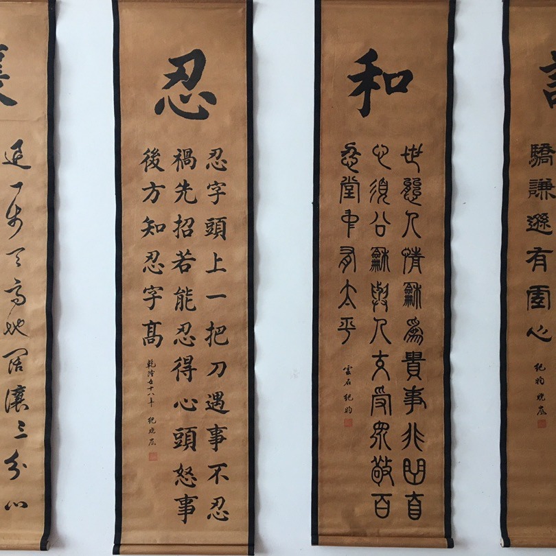 天道は勤勉に報いる、書道と絵画、毛筆書道、絵画と書道、海納百川、オフィス装飾、書道家の壁画、装飾画