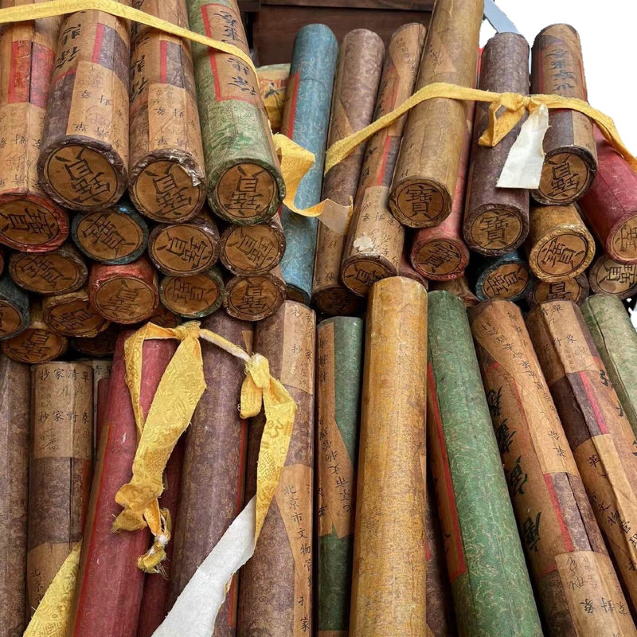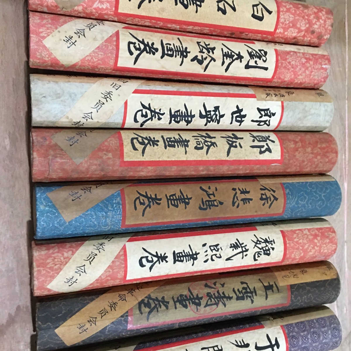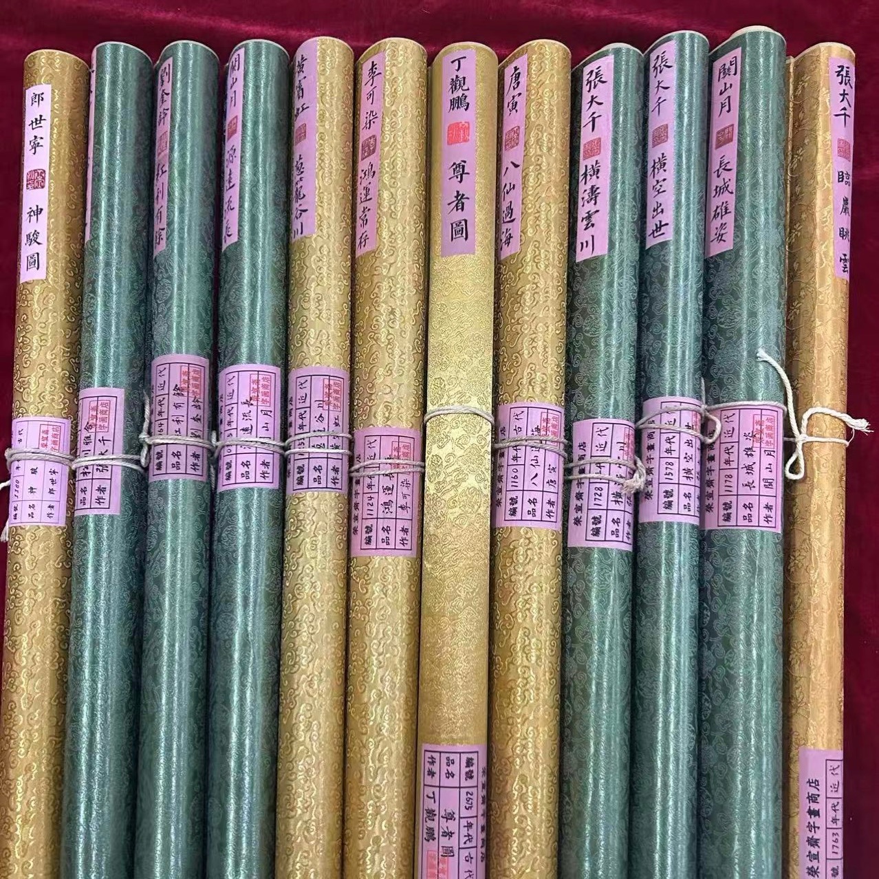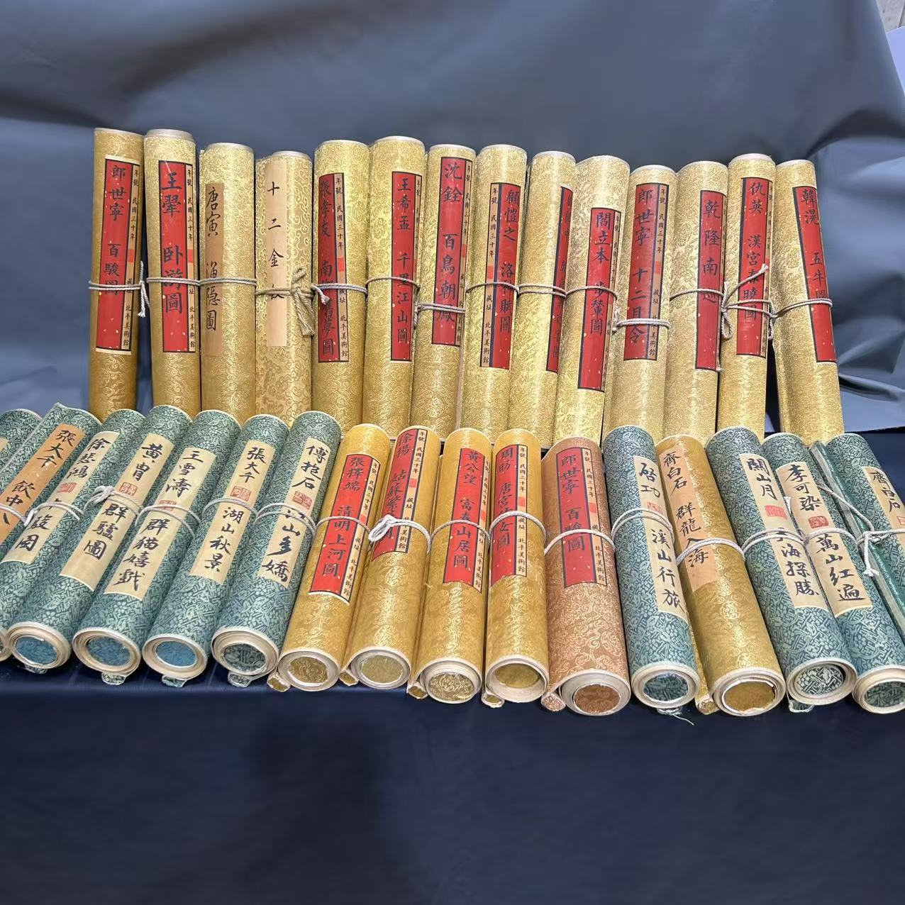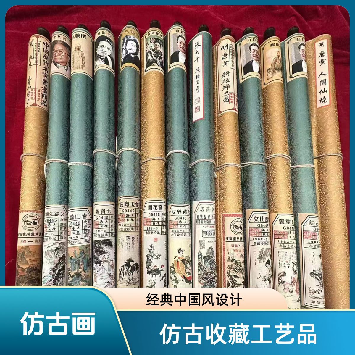 古文をまねて古い多くの種類を作って、古書画の名家の書画の逸品の小さい円筒の書画の置物をまねて工芸品の宣紙を収集します。