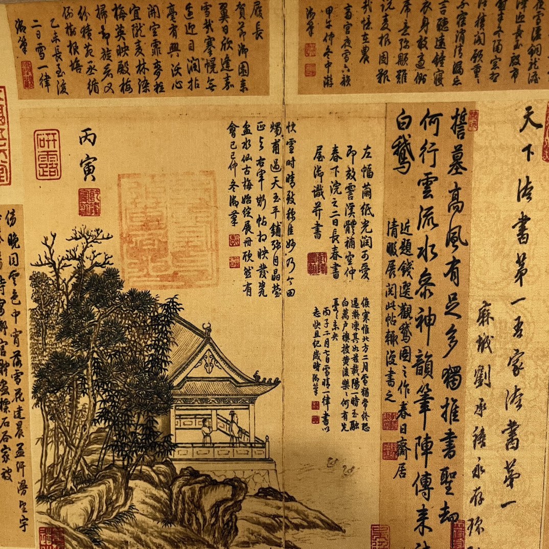 古風な書画の復古的な金の書画の小さい巻の有名人の書画をまねて生放送します。