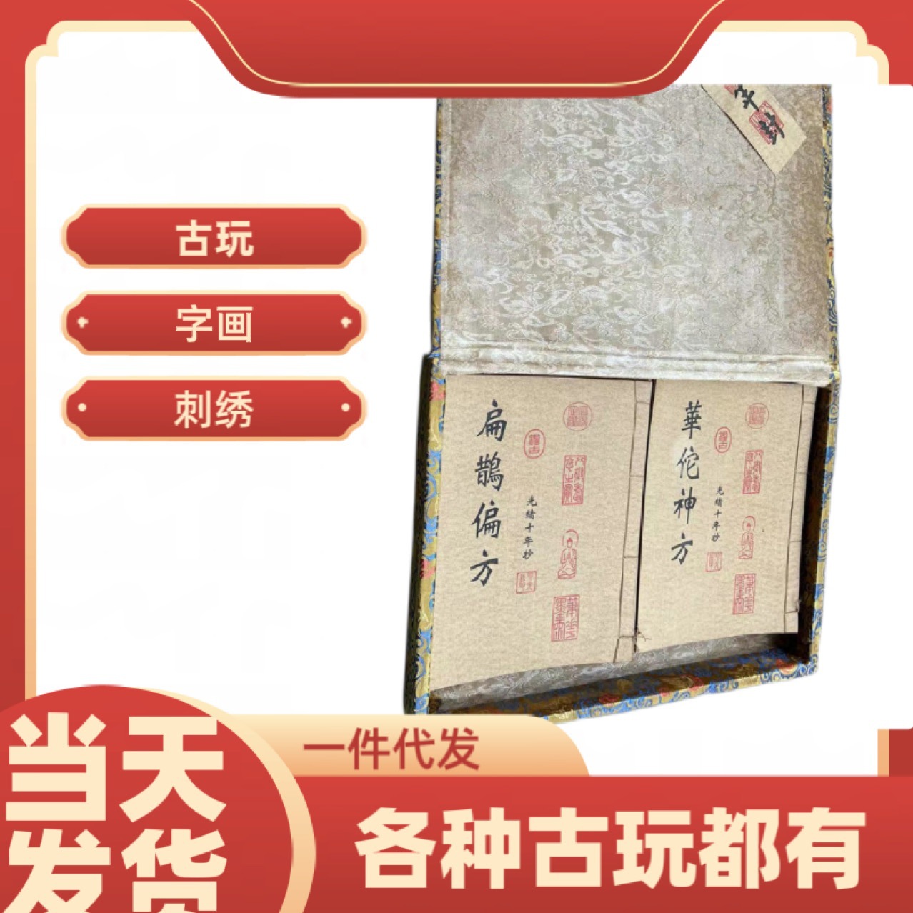 メーカー卸売り復古模造古画帳布包書中国風絹布折扇書代件錦箱書画