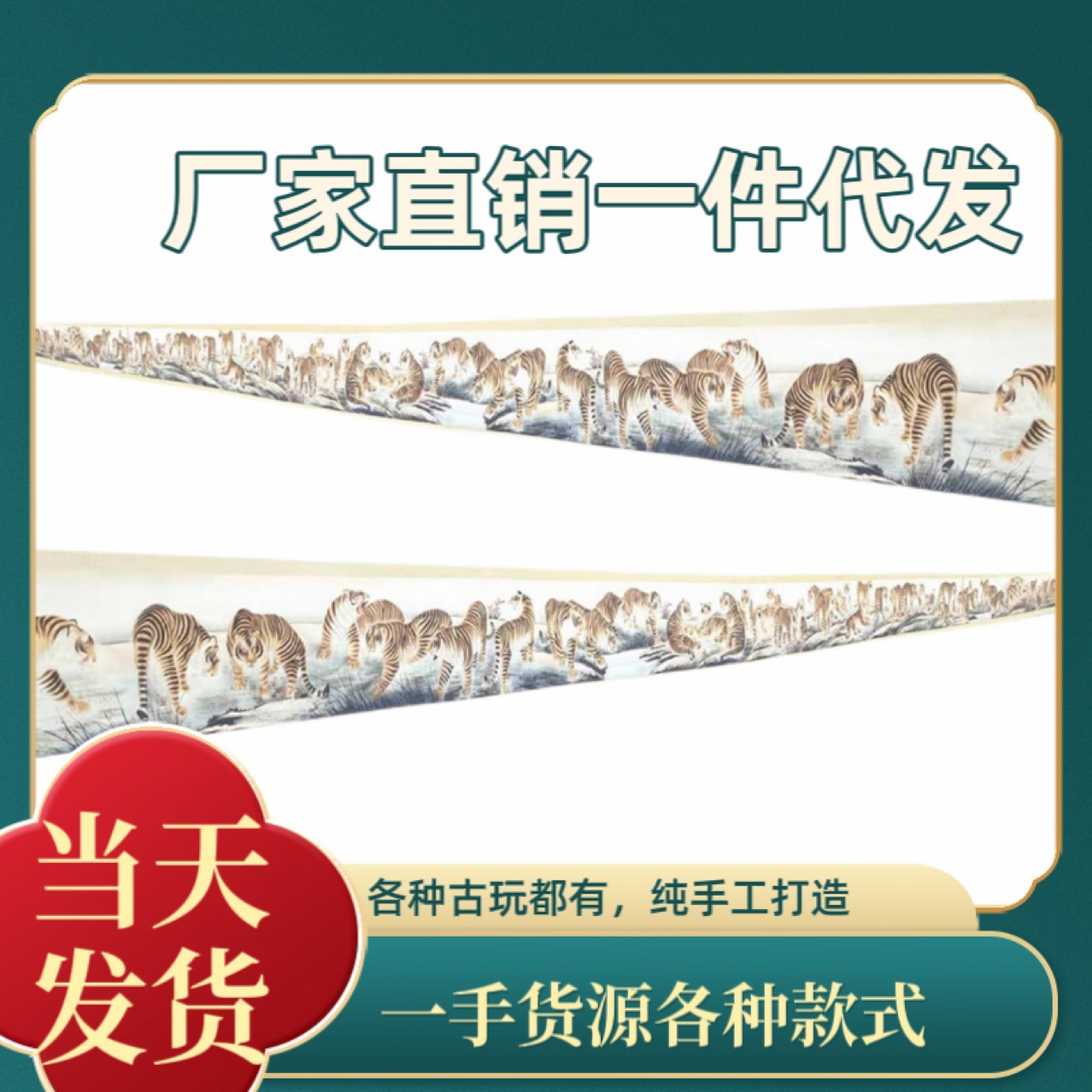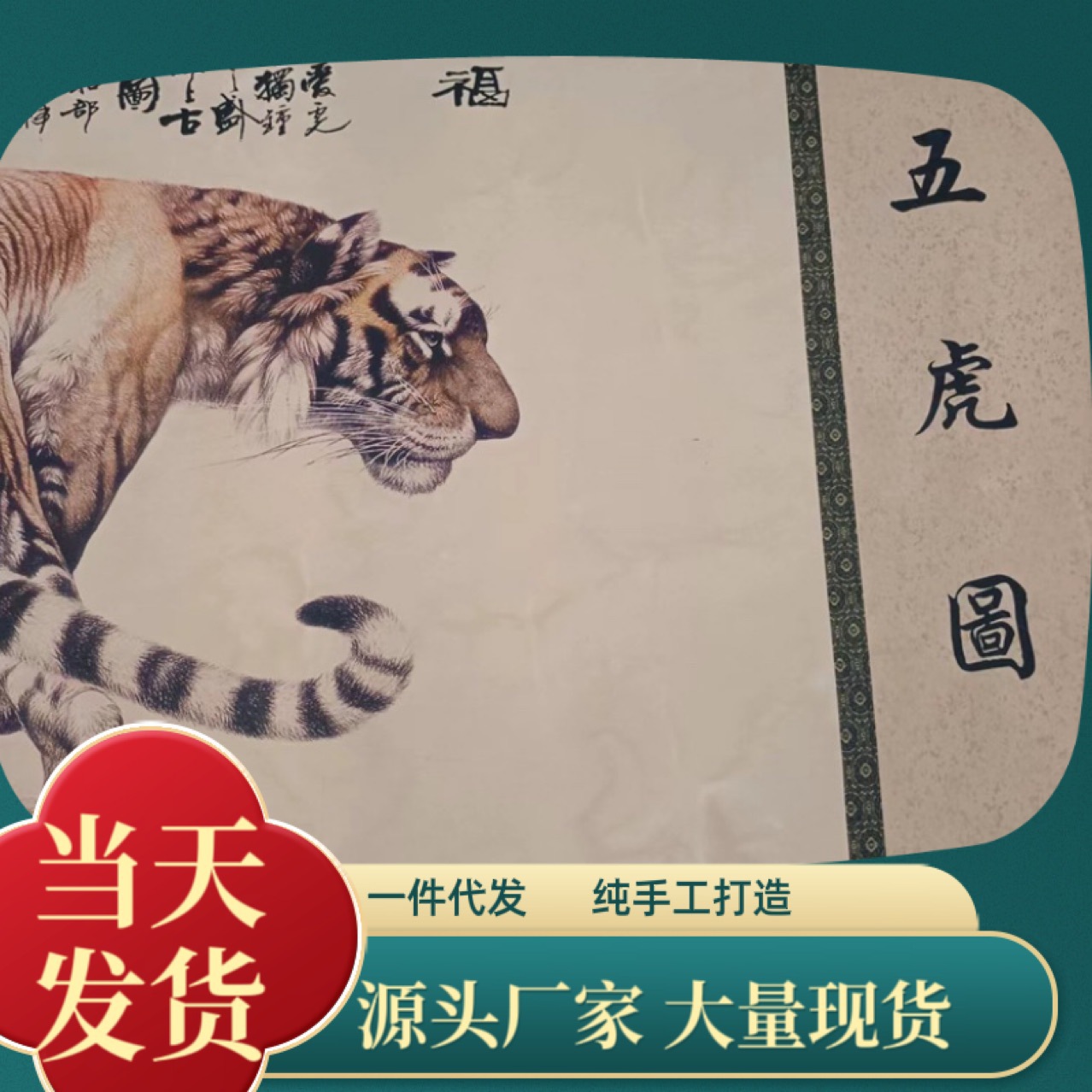 メーカー直販4メートル長巻五虎図中堂画中国式客間書斎事務室装飾条掛け絵