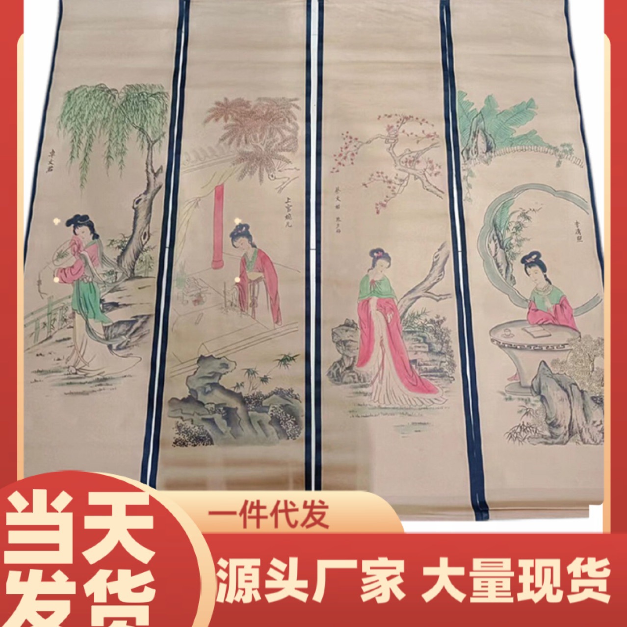 古書の四条屏国画山水画人物画客間玄関装飾画四条屏メーカー直売