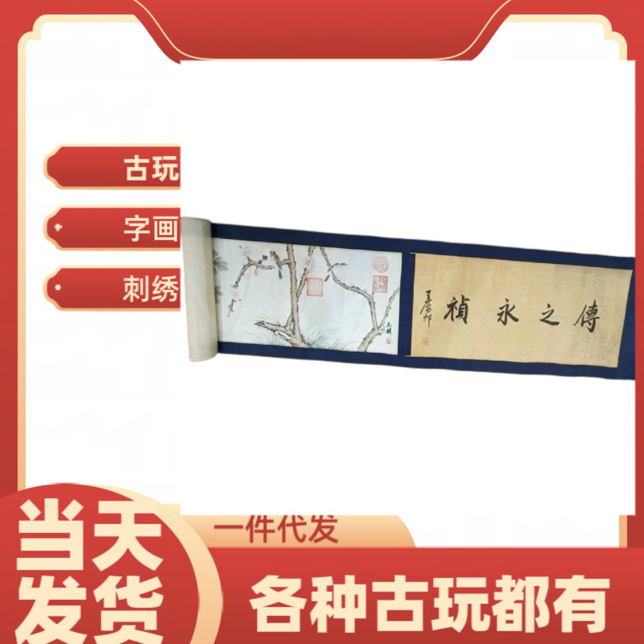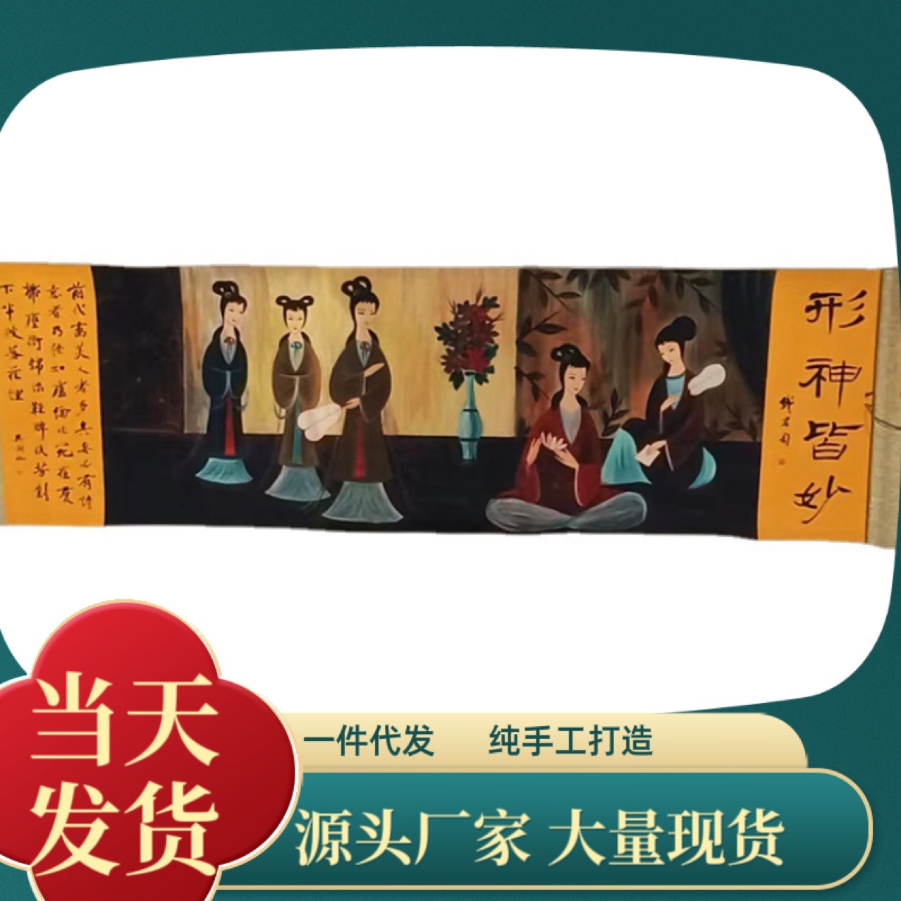 メーカー卸売り古遊び模造古書画長巻画壁画木箱手巻き画リール掛け画人物画