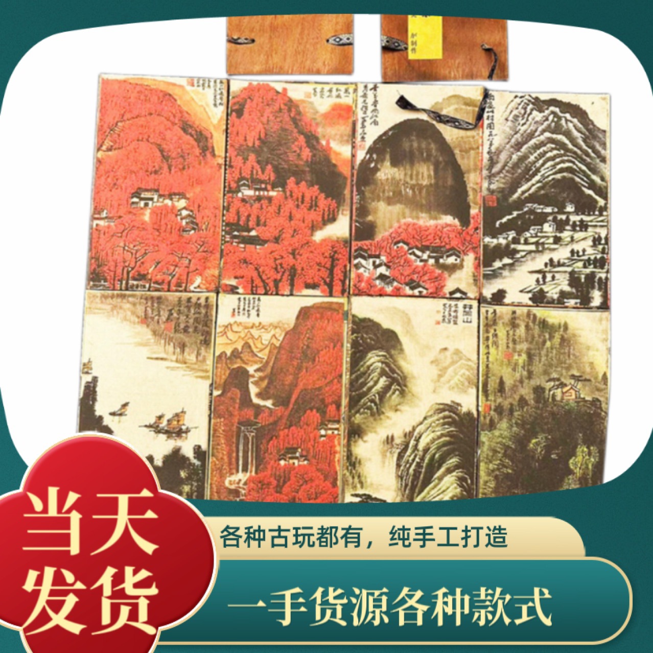 メーカーの卸売りは古木の箱の長い巻きの書道の字をまねて国画のデザインの多くの山水の人物の風景の新型を描きます。