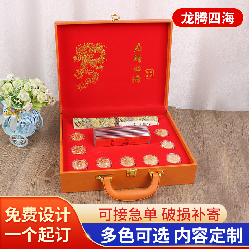 龍騰四海工芸品置物記念貨幣シルク画生放送代理記念貨幣セット収納ケースプレゼント