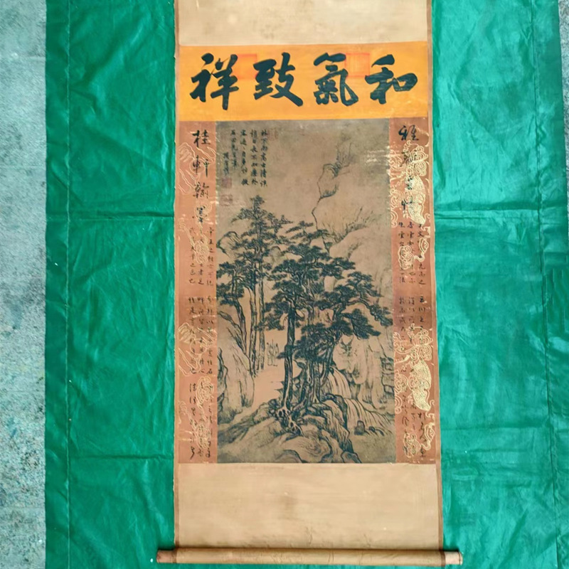 メーカー卸売り古遊び模造古四尺中堂書画火漆付き国画中堂画