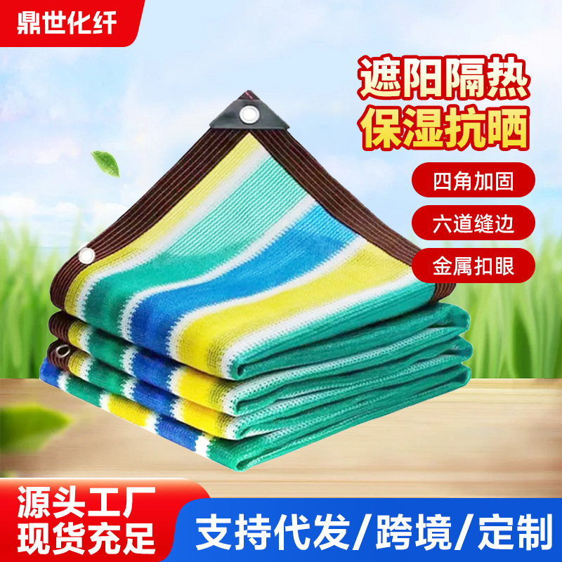 カラフルなストライプのサンシェードネット、暗号化された厚みのある日焼け止めサンシェードネット、中庭の屋根の多肉植物の花の遮光および断熱ネット