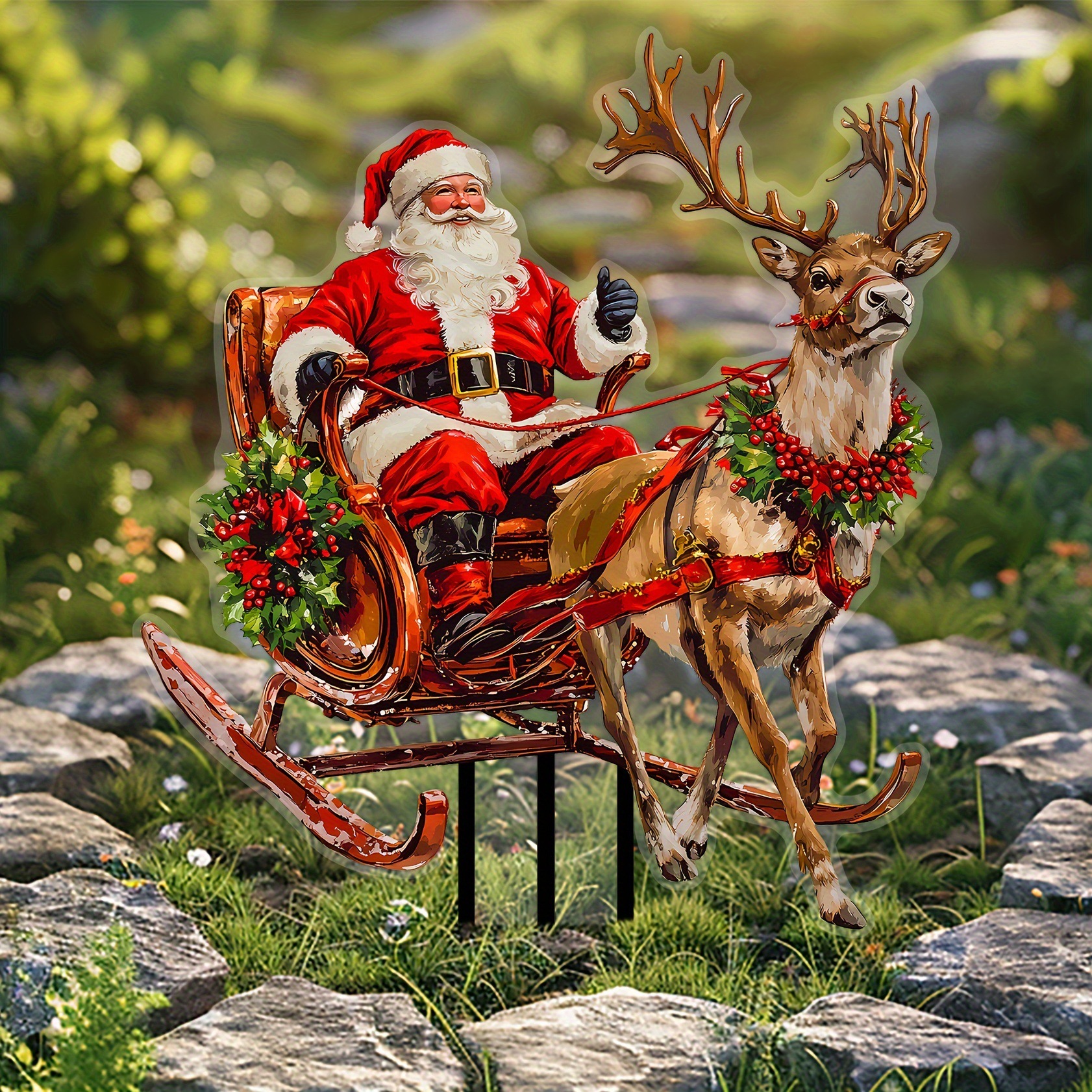 国境を越えてトナカイそりに乗ってプレゼントするサンタクロースアクリル屋外庭園防水庭園に挿し込む
