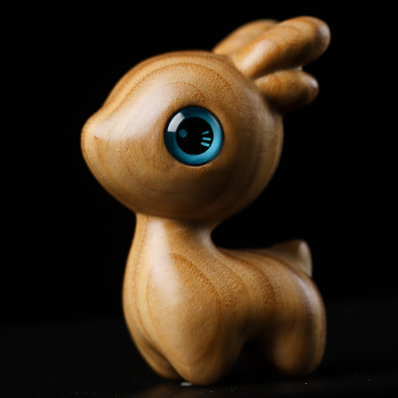 緑檀木動物木彫り食夢鹿のハンドルが可愛いミニ鹿萌え鹿の置物工芸品プレゼント