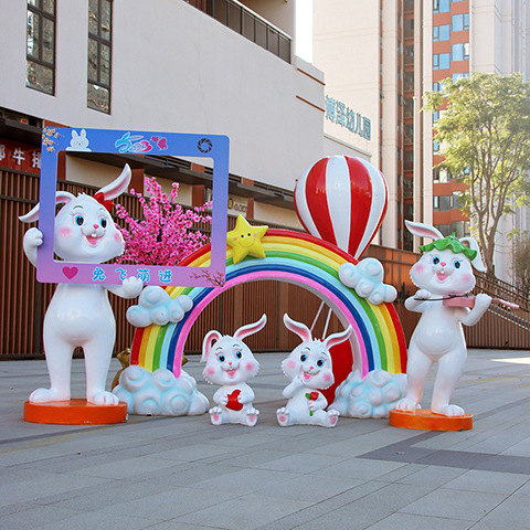 屋外アニメネット赤公花園林デパート店舗観光地区装飾ウサギマスコットガラス鋼彫刻置物