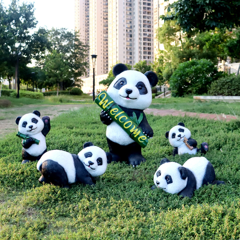 クリエイティブかわいいパンダ彫刻シミュレーション樹脂動物置物屋外庭園公園芝生別荘装飾