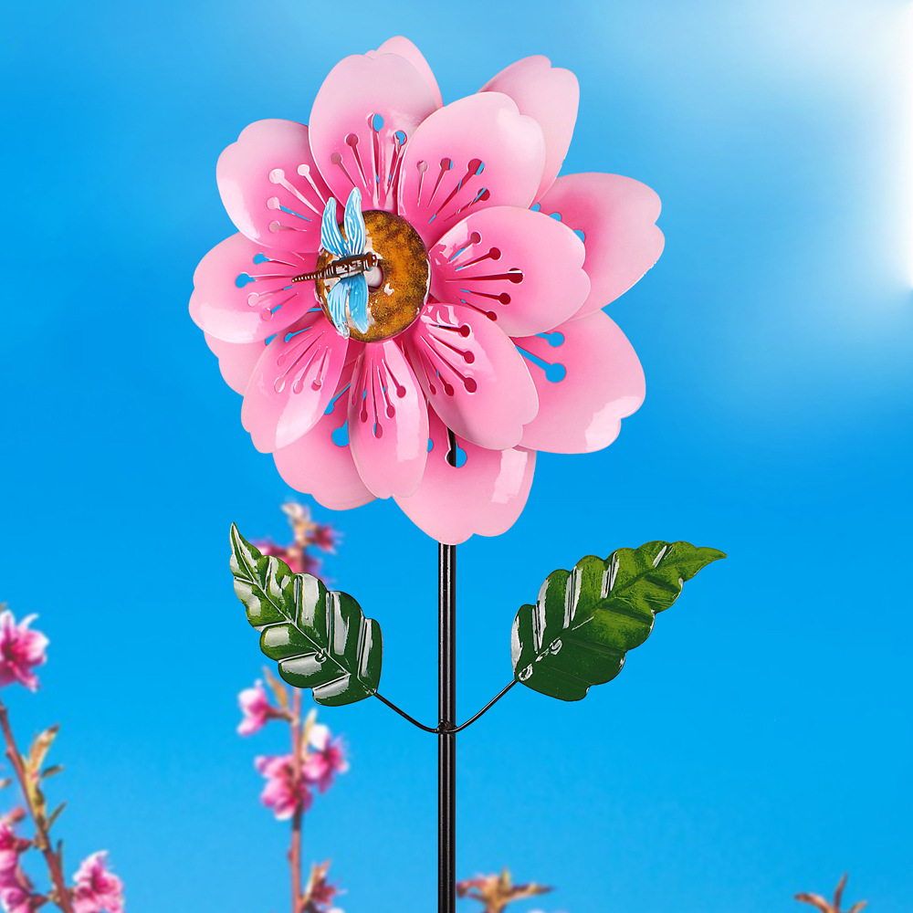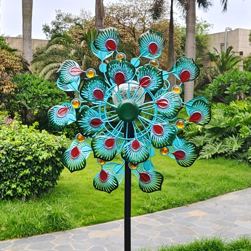 国境を越えた新しいアイデアピーコック花鉄芸風車両面回転可能屋外ガーデン別荘装飾金属プラグイン