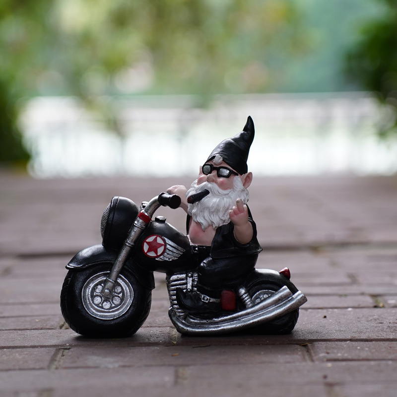 クロスボーダーの大きいサイズのドワーフのオートバイの彫刻は庭を飾って屋外の花園の庭を飾ってアイデアの樹脂を飾ります。