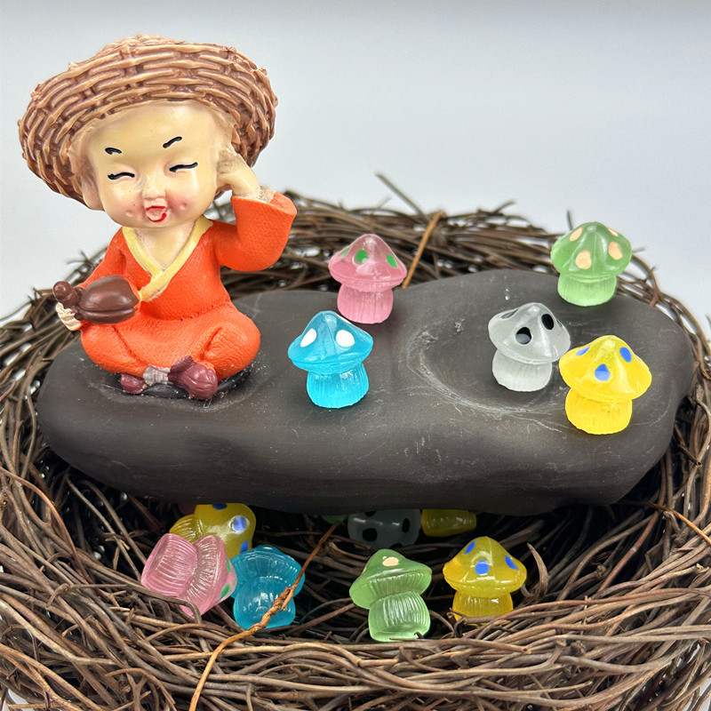 色絵夜光キノコ置物庭花園微景観発光樹脂夜光石蛍光玩具部品工場