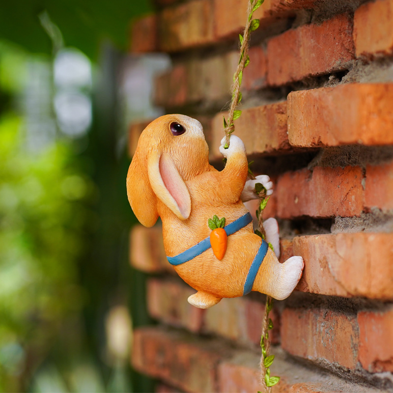 創意樹脂工芸品シミュレーション動物ウサギのブランコは花園の置物のベランダの庭の木の上の装飾品を掛けます。