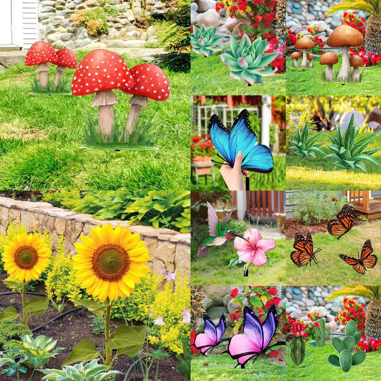 YKLU227-236の立体キノコの蝶のヒマワリの花の緑の庭は庭の屋外の装飾のプラグインを挿し込みます。