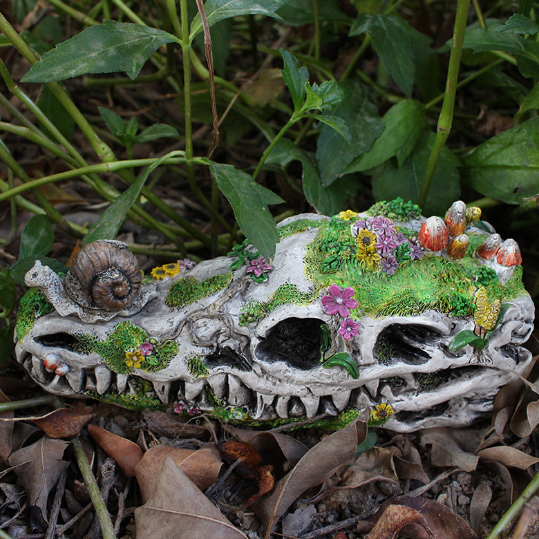 屋外創意芝生庭園樹脂置物恐竜化石花園微景観置物植木鉢置物