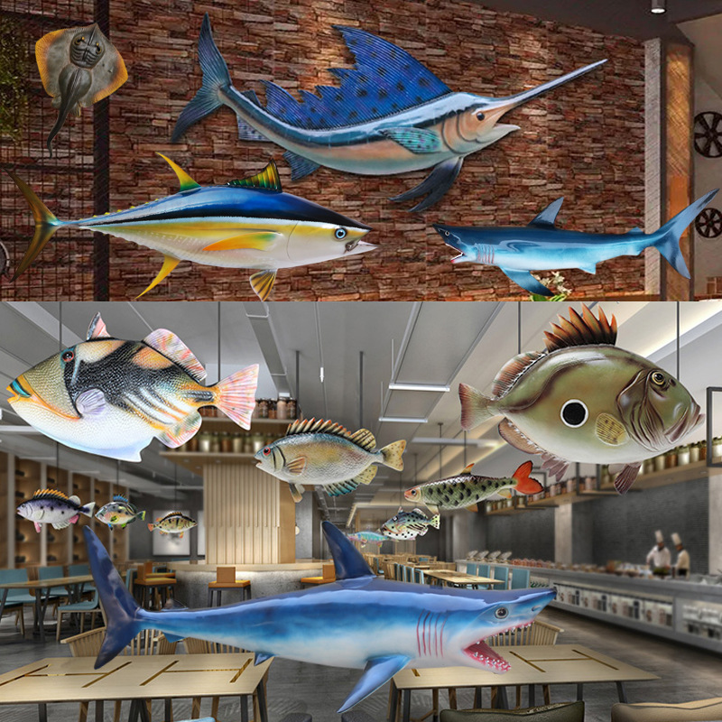 擬似剣魚模型置物熱帯魚魔鬼魚旗魚サメ鯉彫刻海洋館レストラン吊り飾り
