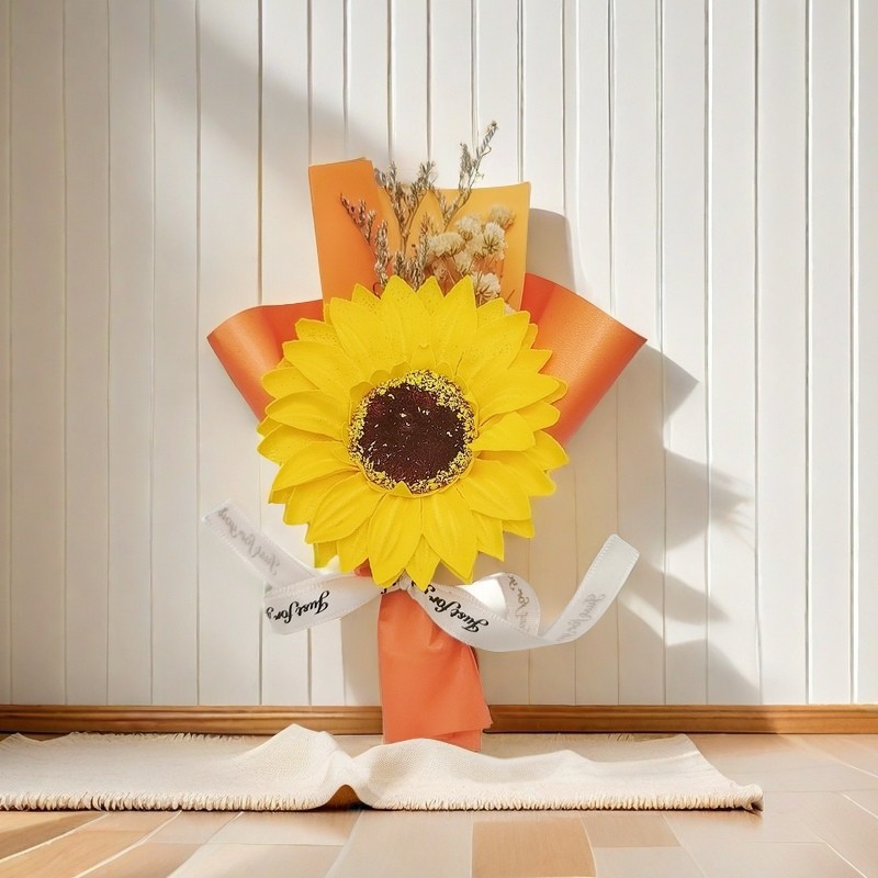 完成品の小さな花束 クリスマス 新年 ひまわり 造花 サンフラワー ギフトセット 装飾 ソープフラワー