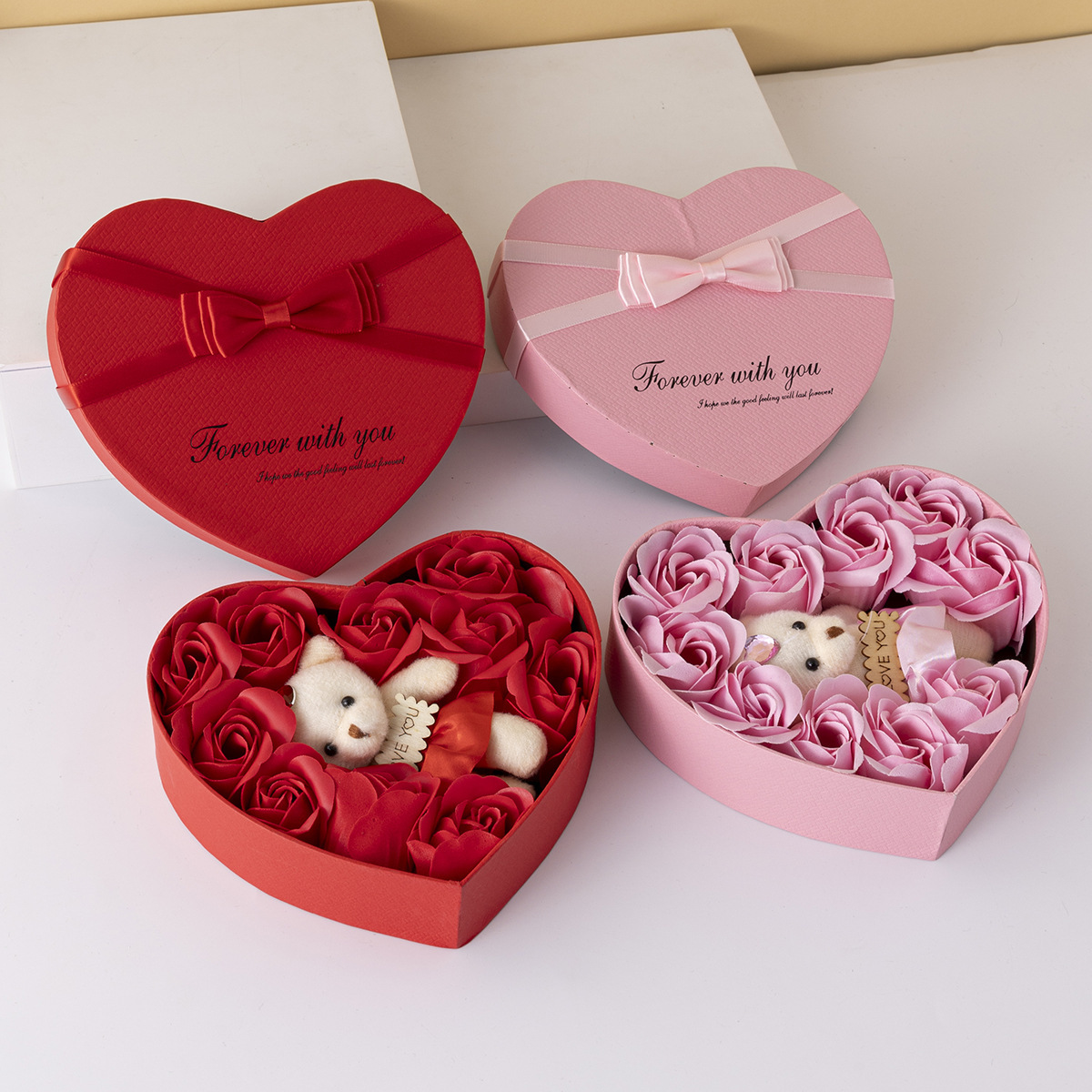 クロスボーダー石鹸花バラ愛ギフトボックスバレンタインデー母の日プレゼントハート型擬似ギフトボックス石鹸