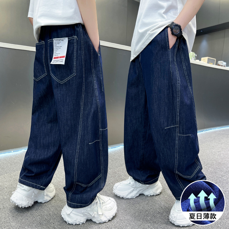 ボーイズジーンズ 2025 夏薄手中大型子供スタイルルーズカジュアルパンツボーイズストレートパンツテンセルパンツ