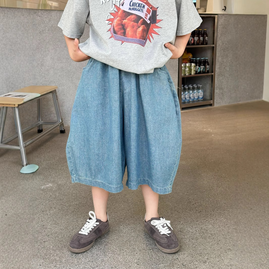 【在庫一掃セール】2025年新作夏子供用バンブーデニムクロップドパンツ男の子用薄手ゆったりキャロットパンツ