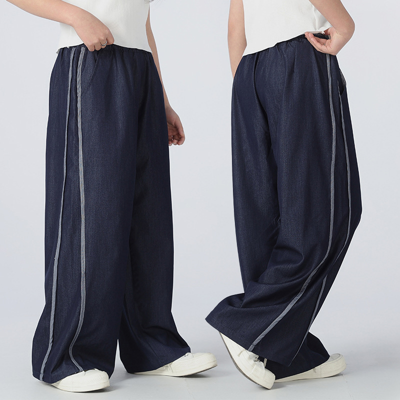 太った女の子の天糸ジーンズ夏の薄いタイプの子供の大きいサイズのゆるいストレートパンツ中学校の学生服