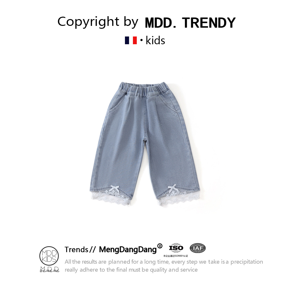 MDDガールズオープンジーンズ2025年春夏新作水洗いソフトデニム蝶結びレースルーズパンツ