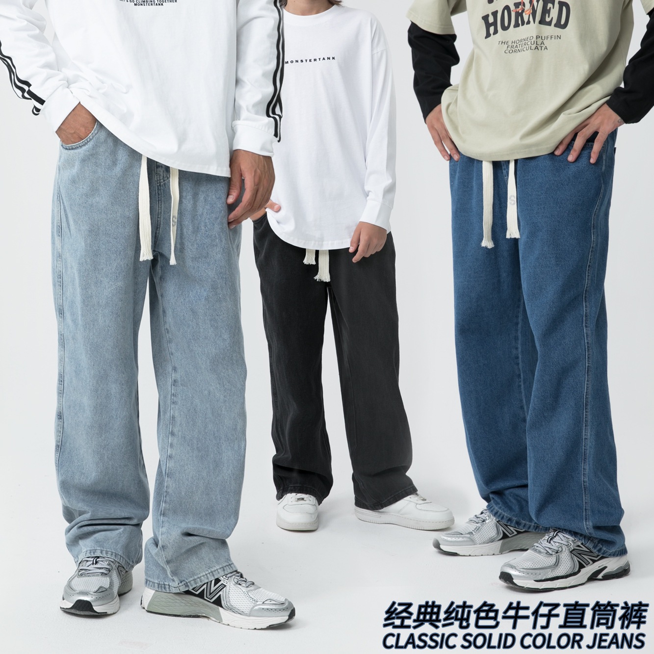 韓国版の新しい子供服、ハンサムな男の子のジーンズ、子供用ベビー春ズボン、シンプルなルーズカジュアルストレートパンツ