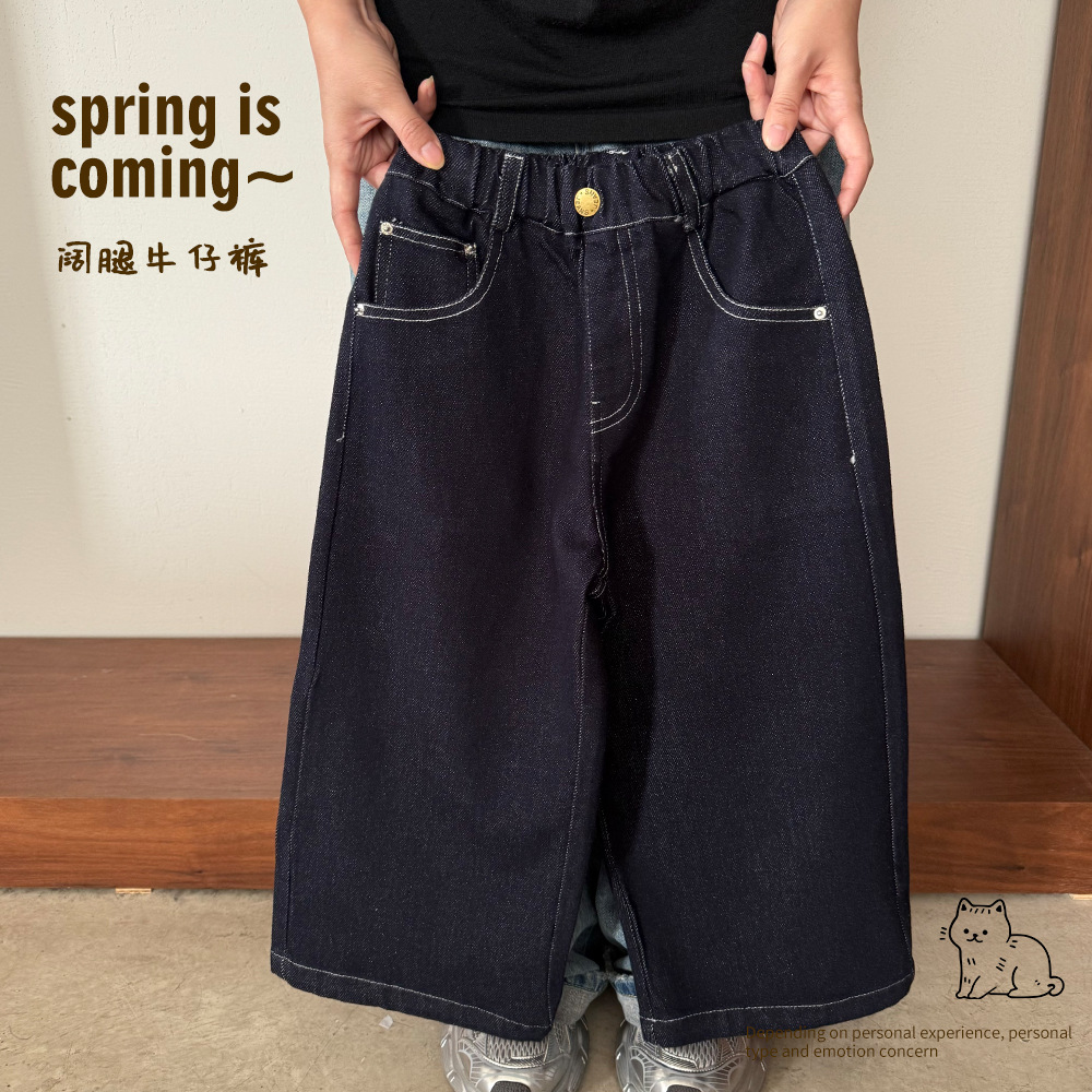 ボーイズスタイルジーンズ2025新しい子供の春と秋のパンツ男の子のズボンルーズパーソナライズされたワイドレッグパンツトレンディ