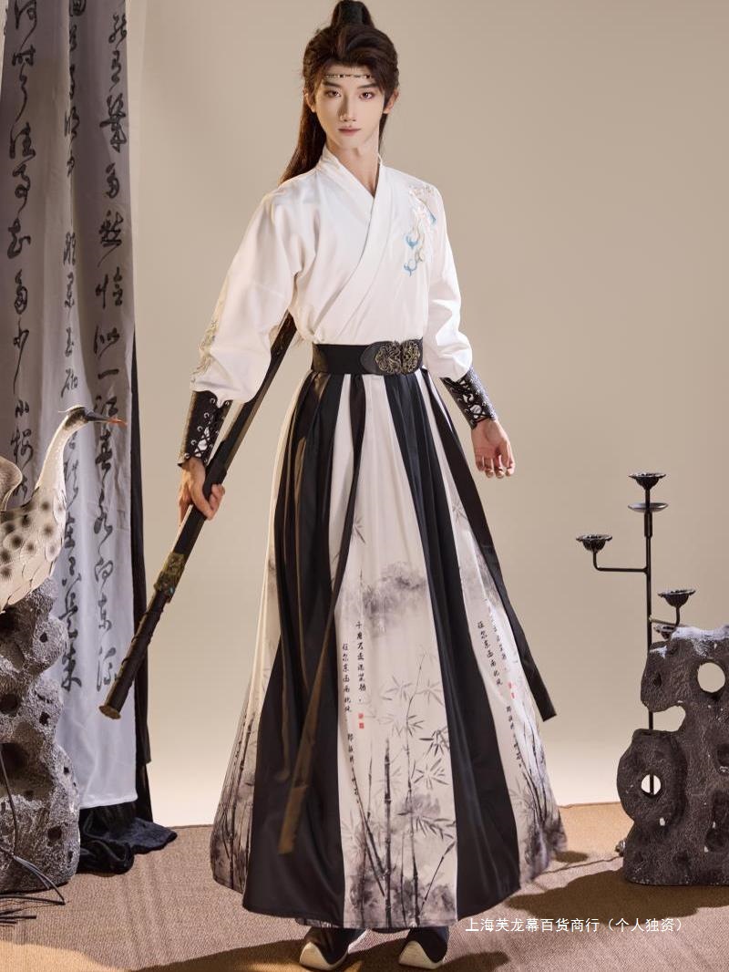男漢服武侠朝歌侠客格好いい古着中国風ロングスカート交領学生演出班服格好いい漢服