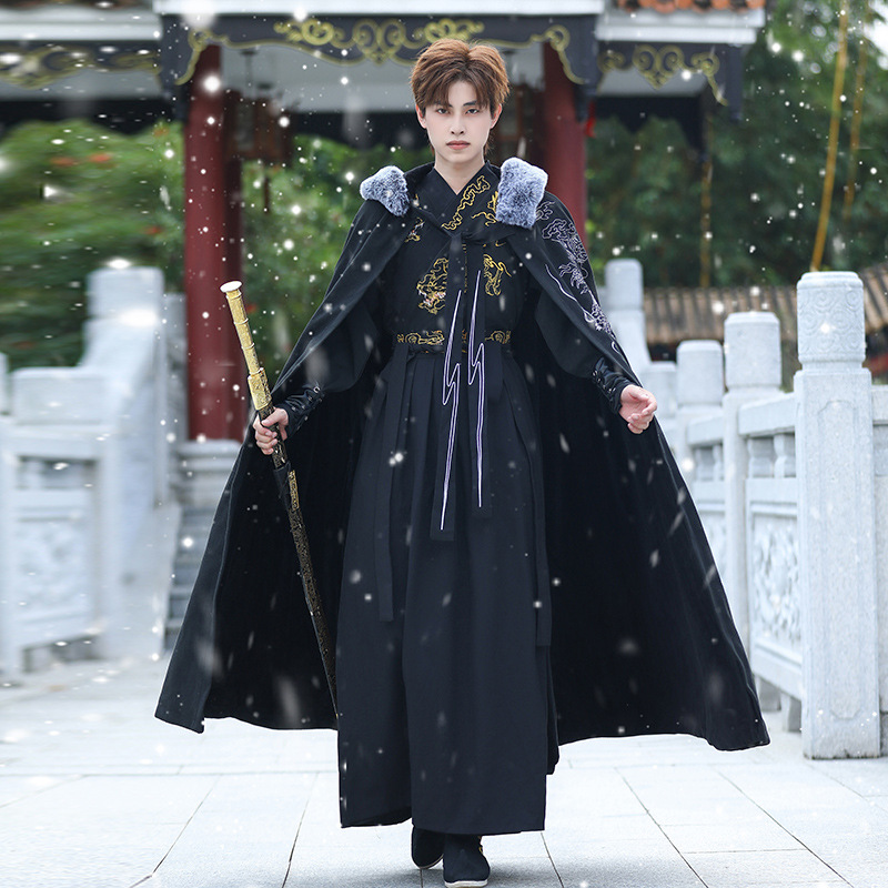 秋冬の新型の大きいサイズの紳士服の伝統的な漢の要素の古風な長袖の漢服の男性式の剣侠国の潮はクラスの服の男性を演出します。