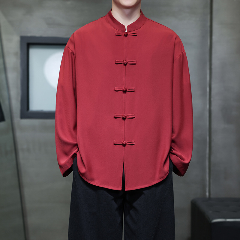Cod 16民族風メンズ中国風秋純色唐服上着新中国式レトロなマント漢服コート男