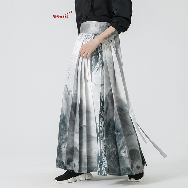 新中国風漢服男2024新型水墨プリント馬面スカート高級感ゆるい大サイズスカート