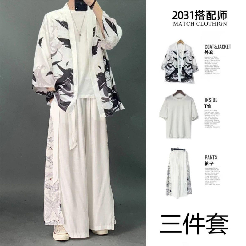 2025 夏の新中国風の風景と鶴プリント漢服ウインドブレーカーカーディガンマント男性用