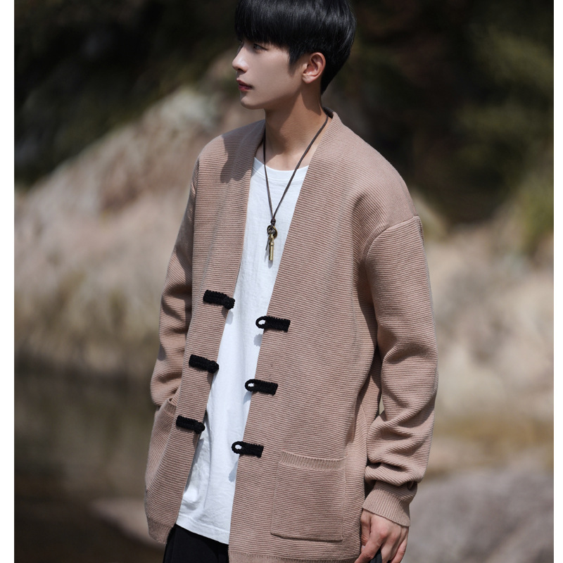 2023秋冬の新型の大きいサイズのゆったりした中国風のセーターの男性は中国式の唐装の漢服のカーディガンの復古のコートを掛けます。