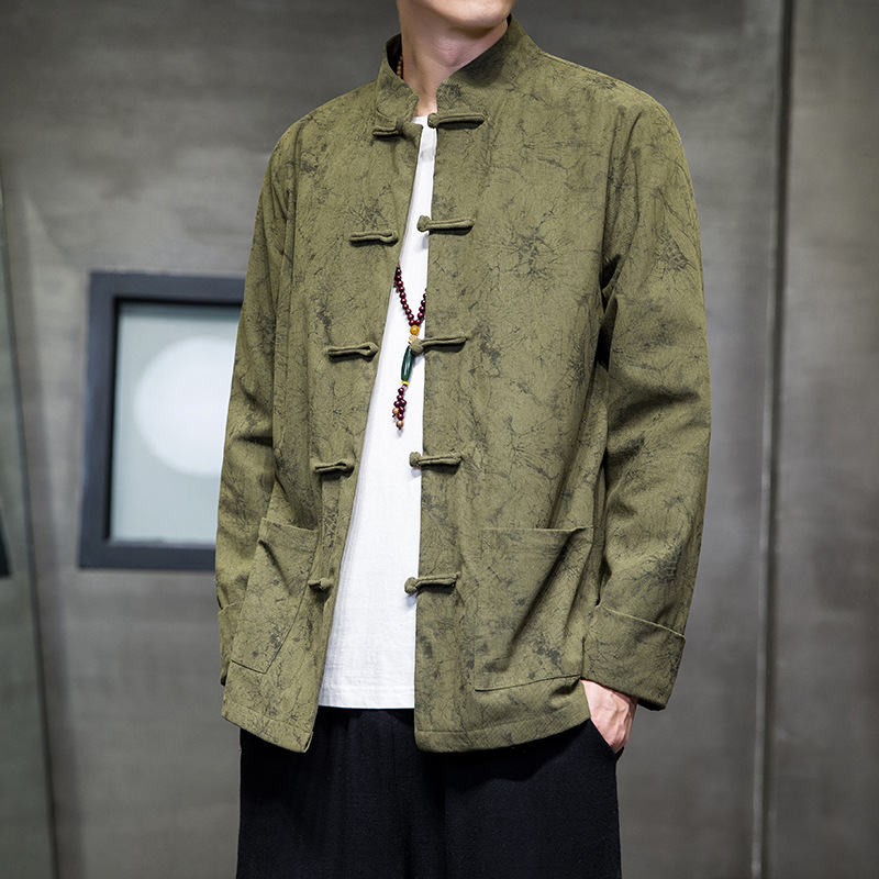 2023秋冬新型中国風メンズ中国式プリント綿麻亜麻唐装漢服ジャケット大サイズコート