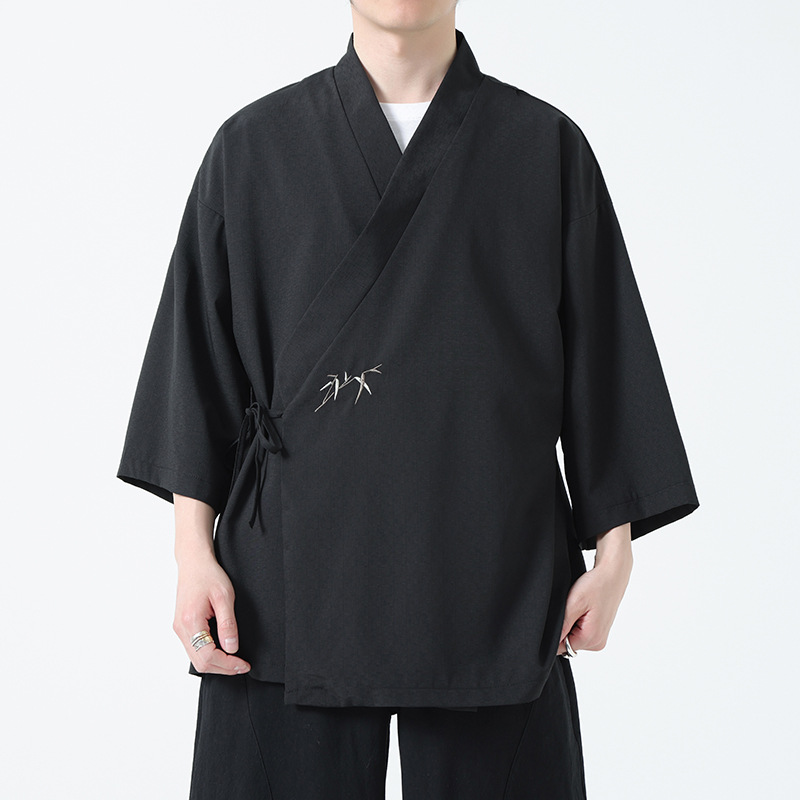 夏の中国風の服の男性の短いタイプは中国風の7分の袖の道の服のカーディガンの刺繍の漢服の日本の薄いコートを持ちます。