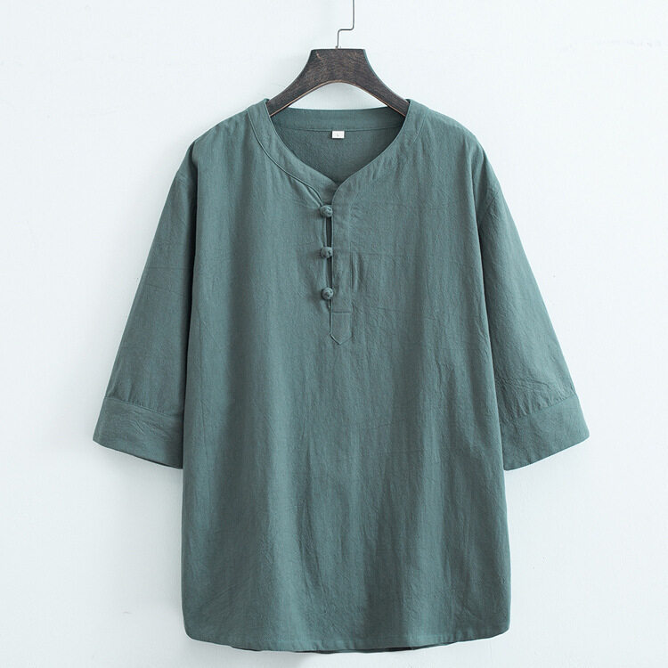 2025 夏のメンズコットンとリネン半袖 Tシャツ中国風七分袖中国風レトロカジュアル禅茶服卸売